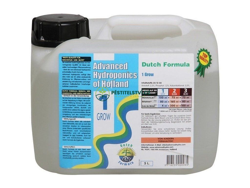První ze tří složek hnojiv Advanced Hydroponics je určena pro podporu rostlin v tvorbě biomasy a sytě zelených listů během vegetativní fáze. Jen zdravé rostliny vám zajistí vysokou produkci! Vsaďte na ověřenou kvalitu hnojiv vyráběných již po desetiletích v Holandsku.Pro ještě lepší výsledky doporučujeme současně použít aditiva řady Natural Power.