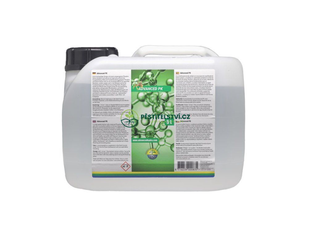 Advanced PK je vysoce kvalitní hnojivo s vyváženým poměrem fosforu a draslíku, které je skvělým doplňkem ve fázi nasazování květů, ve fázi kvetení i při vývoji plodů.