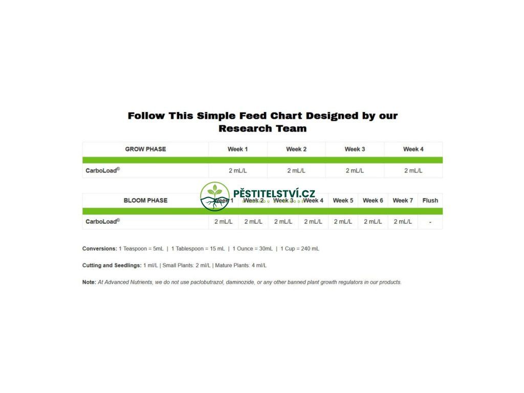 Přípravek CarboLoad je zdrojem potravy pro mikroorganismy a následně pomáhá vytvářet zdravé a plodnější kolonie těchto prospěšných mikrobů. CarboLoad je směs sacharidů zvyšujících výkonnost, zatímco Sweet Leaf dodává rostlině terpenoidy posilující chuť a vůni.
