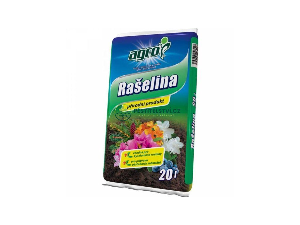 AGRO rašelina je čistě organická hmota bez chemických přísad, která zajišťuje bohatou tvorbu kořenů, květů a zdravý růst rostlin. Prokypřuje, vylehčuje, provzdušňuje půdu a upravuje její pH a při tom udržuje půdu kyprou, vzdušnou. Také zadržuje vláhu a díky složení omezuje výskyt kořenových chorob.
