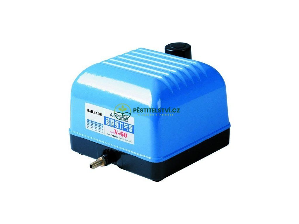 Vzduchové čerpadlo s hliníkovým krytem Air Compresor V-20 je vybaveno jedním výstupem a výkonem 1200 l/h. Je kompatibilní s hadičkami 10/13 mm a vhodné pro vnitřní i venkovní instalace do jezírek nebo nádrží se zálivkou.