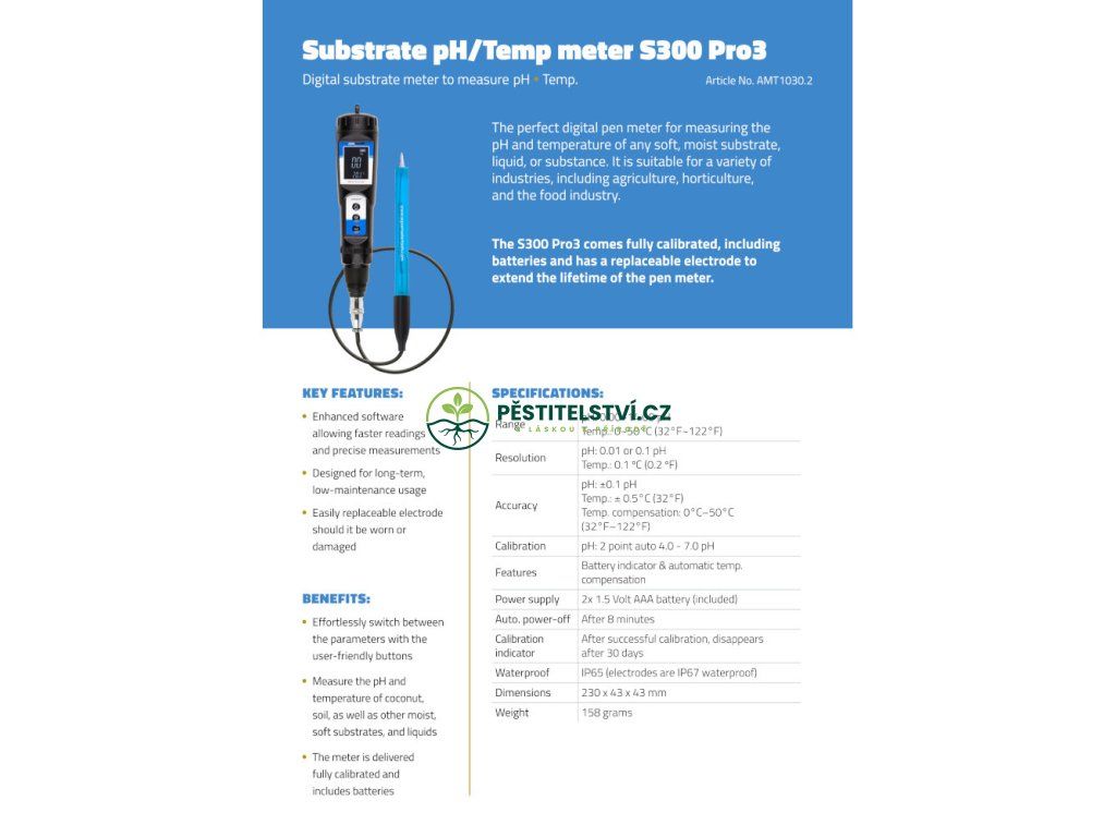 - 1 x digitální pH metr S300 Pro 3.0