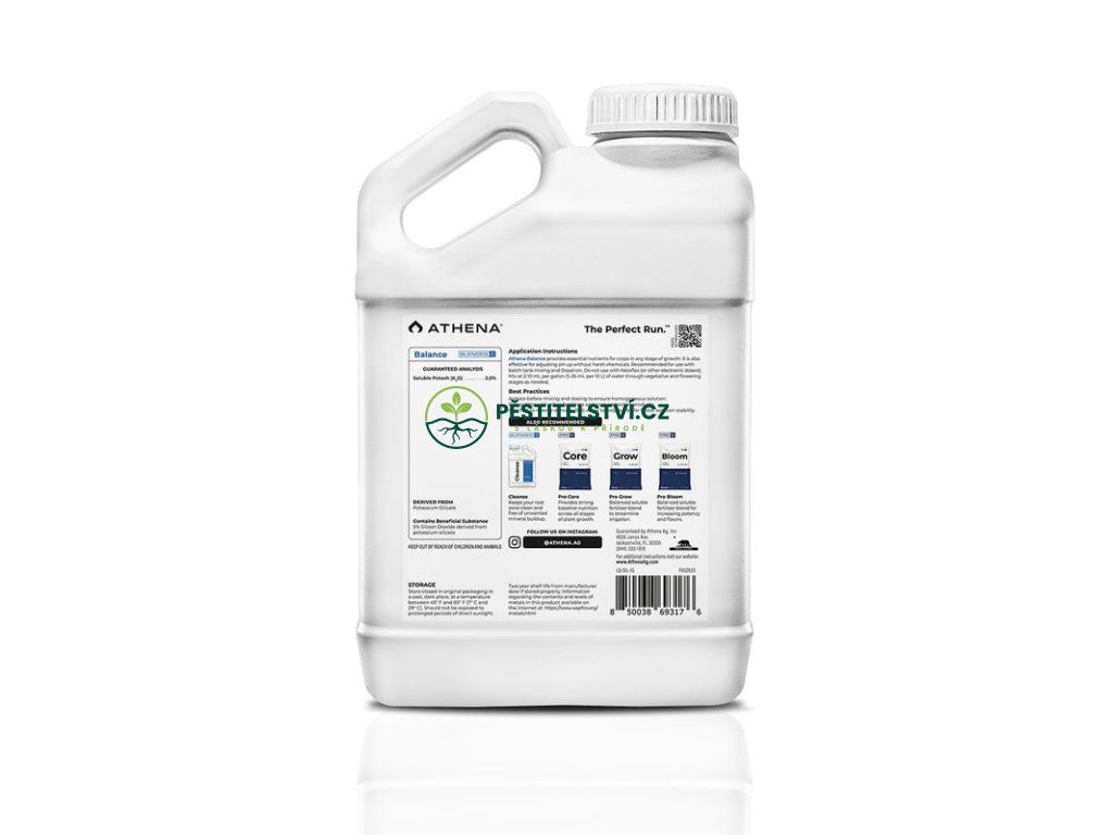 Složení neobsahuje sedimenty a je kompatibilní s mechanickými dávkovacími systémy (Dosatron). Athena Balance se nedoporučuje pro elektronické dávkovací systémy (Netafim).