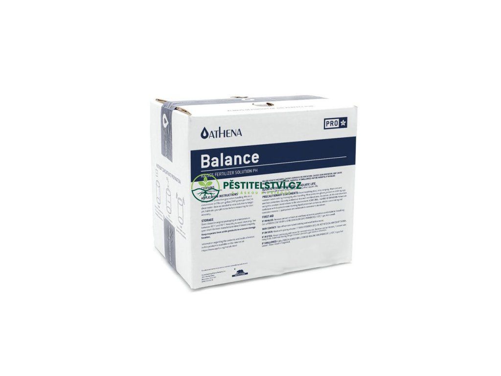 Athena Pro Balance je ve vodě rozpustný pH up pro profesionální kultivátory navržený speciálně pro použití s pokročilými fertigačními systémy, jako jsou Dosatron a Netaflex. Athena Pro Balance umožňuje pěstiteli přizpůsobit sílu úpravy pH jeho jedinečné situaci. Koncentrát Pro Balance lze míchat v dávce 0,25-1 lb na galon. Míru míchání a dávkování upravte v závislosti na množství požadované úpravy pH.