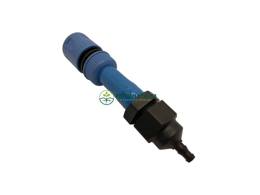 Na jedné straně je přípoj pro 9mm hadici, zatímco na straně druhé je rychlospojka pro snadné připojení ke Flexitanku.