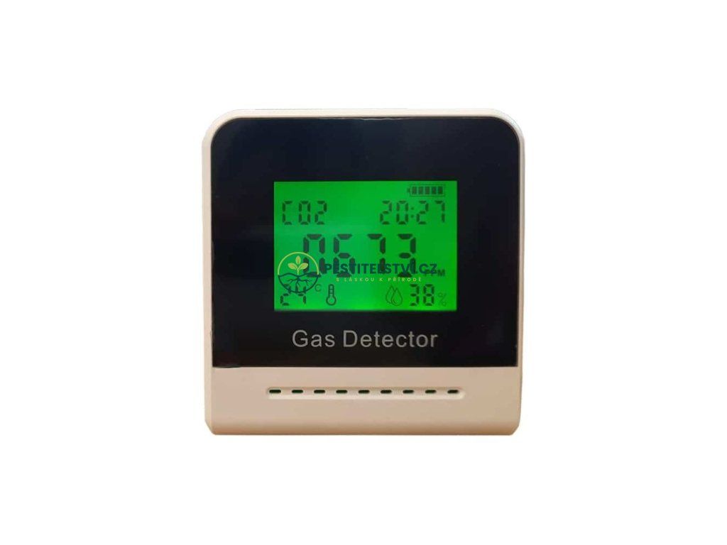 Dlouhodobé vystavení vysokým koncentracím CO2 může být škodlivé pro lidské zdraví, proto detektor CO2 obsahuje barevné alarmy, které vás upozorní na nebezpečné koncentrace. Další funkce jsou k dispozici v podobě monitorování teploty a vlhkosti. Přístroj má účinný rozsah 400-5000 ppm, je lehký a snadno se umísťuje a nabíjí se pomocí kabelu USB, který je součástí dodávky.