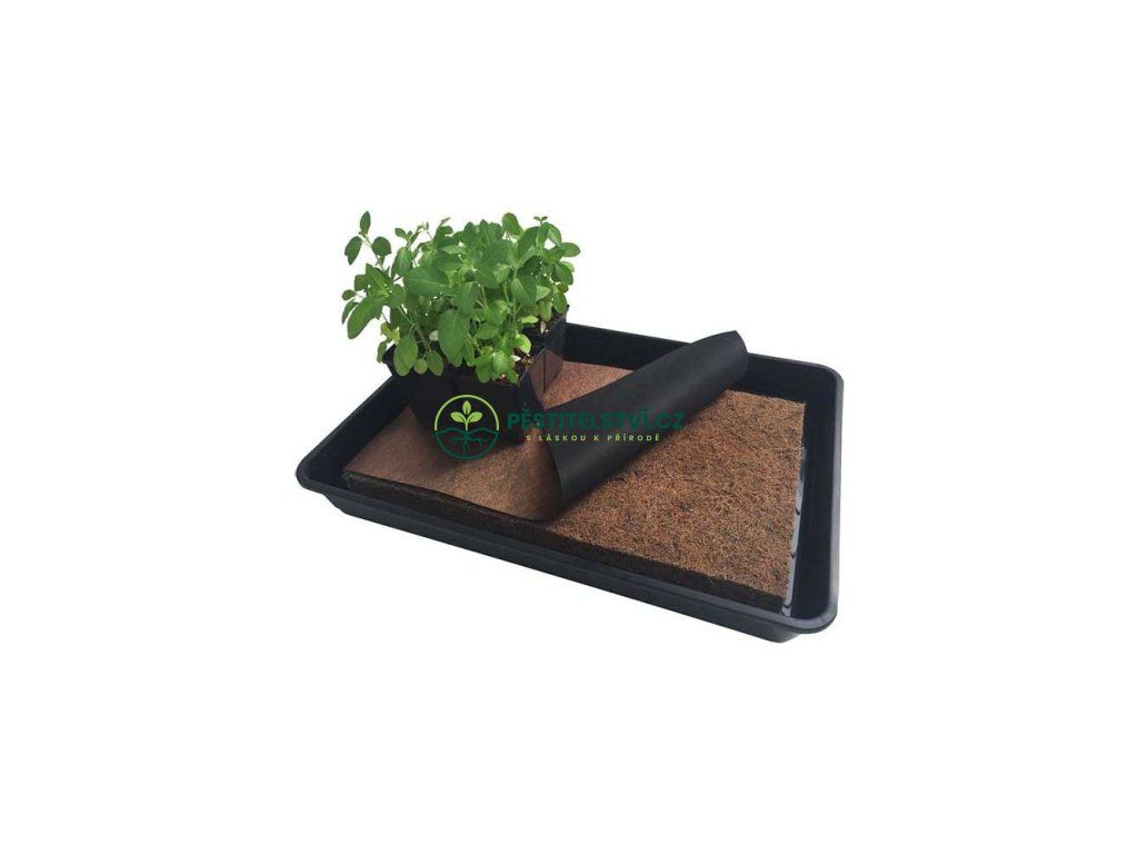 Rohož CocoMat o rozměrech 51 cm x 30 cm x 3 cm vyrobená z kokosových vláken a latexu s fólií Root Control Sheet připravenou na míru. CocoMat zadržuje veškerou potřebnou vlhkost. Stačí jednou naplnit zásobník a CocoMat bude rostliny zavlažovat až deset dní. Podložka CocoMat řídí zavlažování tím, že zadržuje a postupně odvádí vodu k rostlinám kapilárním působením. Jednoduše umístěte podložku CocoMat do misky, naplňte ji vodou, položte na ni zásobník se semeny a pěstujte!