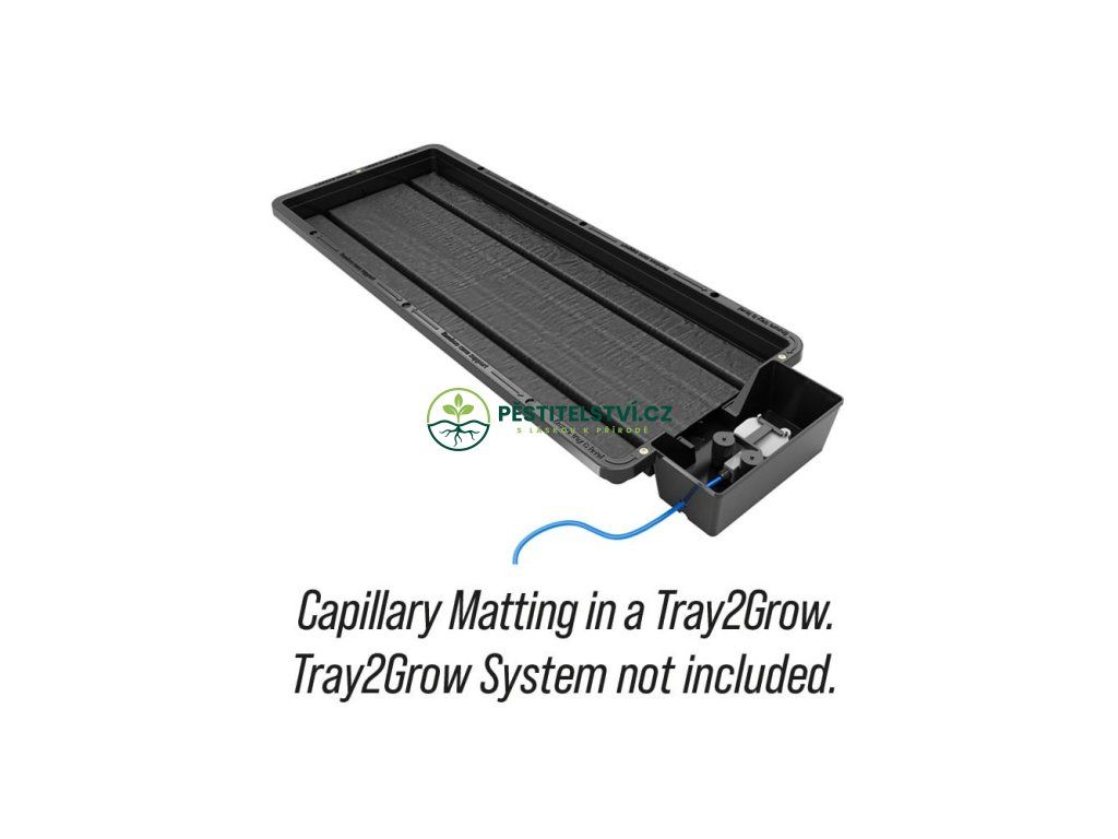 Kapilární rohož odvádí vlhkost ze zásobníku až ke kořenům rostlin nad ním. Vždy ji používejte s fólií Tray2Grow pro kontrolu kořenů nahoře.