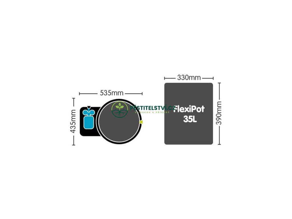 Autopot XXL, pojme 35 l nebo 50 l textilní květináče. Přizpůsobivý límec dokonce umožňuje pěstitelům přepínat mezi velikostmi květináčů podle potřeby a přitom používat stejný zásobník. XXL35 se dodává s látkovými květináči FlexiPot bez obsahu BPA a olova, XXL50 se dodává se stejně specifikovanými 50l verzemi.