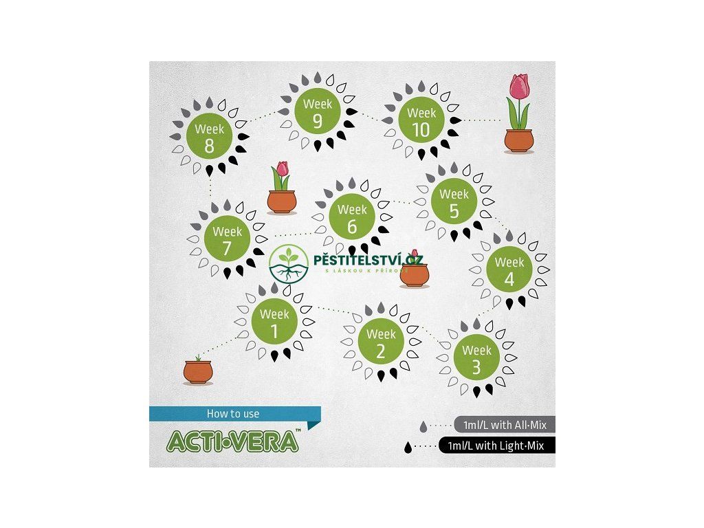 Bio aktivátor BioBizz Acti Vera se používá už od prvního týdne až do posledních týdnů květu. Obsahuje výtažek z Aloe Vera, komplexně povzbuzuje rostlinu k vyšším výkonům.