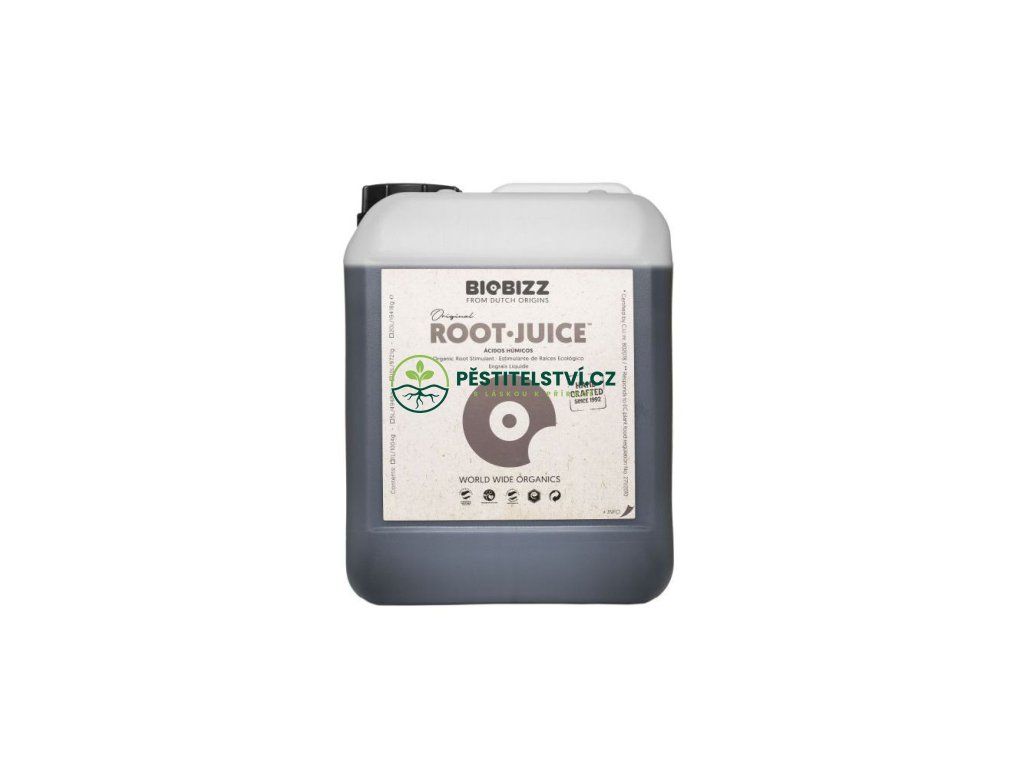 Root-Juice je harmonicky vyvážená směs prvotřídních huminových a fulvových kyselin s mořskými řasami. Root-Juice je kořenový stimulátor vyvinutý speciálně pro dynamický růst kořenů a podporu kořenového systému organickou cestou. Výsledkem je prudký vzrůst a lepší výnos díky schopnosti rostliny zrychlit absorpci živin. Je vhodný pro hydroponicky či v půdním nebo kokosovém substrátu pěstované rostliny.