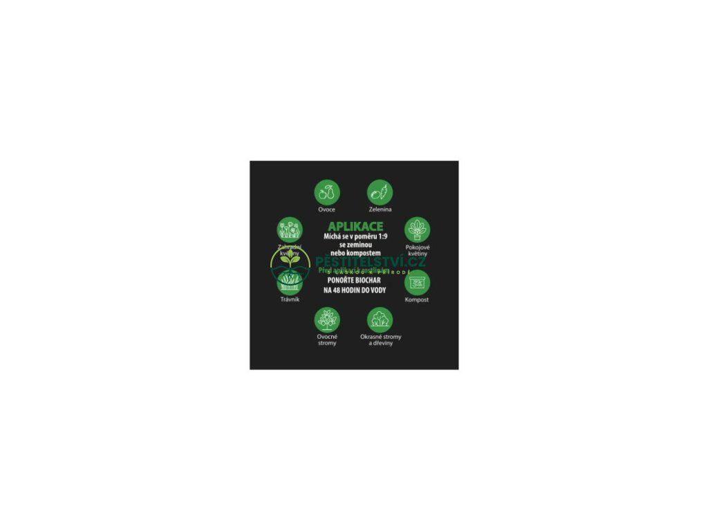 - Biochar na sebe váže škodliviny a toxiny v půdě a zabraňuje jejich pronikání do pěstovaných rostlin.