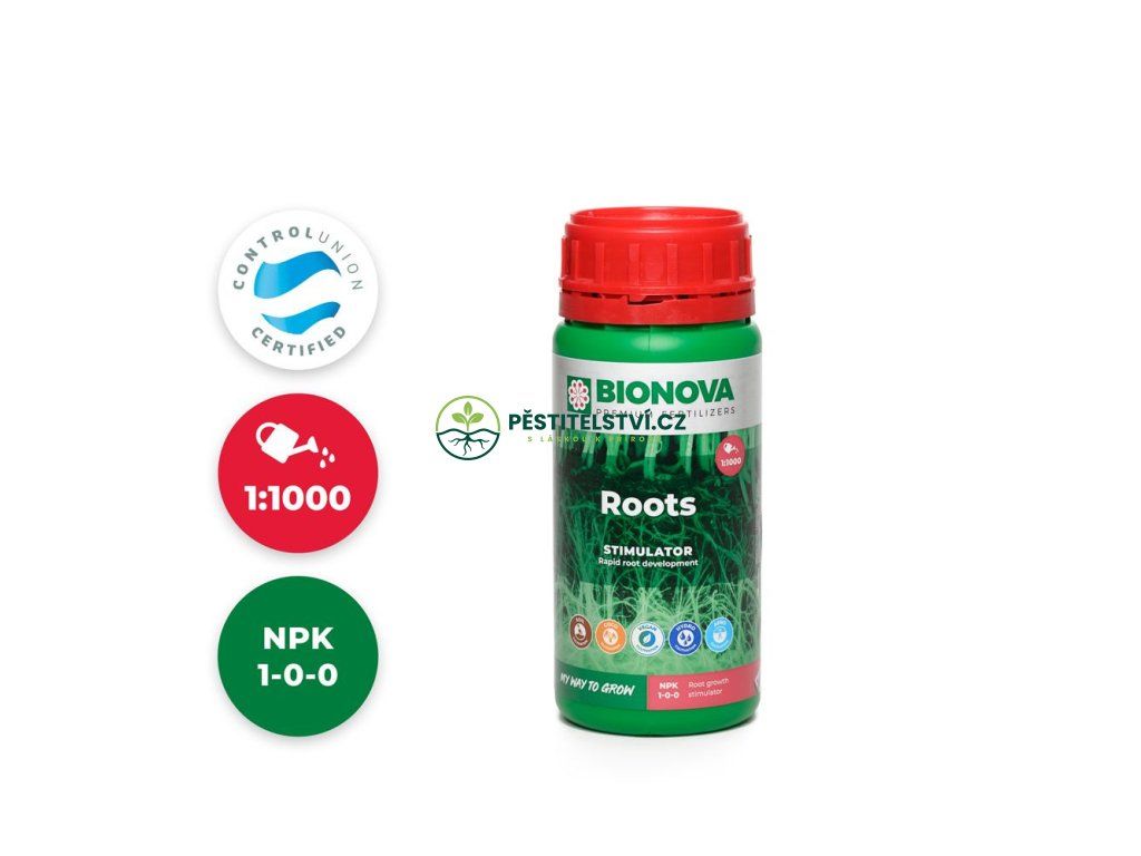Univerzální kořenový biostimulátor BioNova BN Roots se používá až do prvního týdne fáze květu. Podporuje rychlejší rozvoj kořenů, zlepšuje příjem živin a posiluje odolnost rostlin proti stresu. Klíčové přednosti BioNova BN Roots: Obsahuje huminové kyseliny, mořské řasy, kyselinu ascorbinovou, myo-inositol, L-glycin. Podporuje rychlejší rozvoj kořenů. Zlepšuje příjem živin. Posiluje odolnost rostlin proti stresu. Podporuje vyšší výnosy. Aplikuje se na listy nebo zálivky. Pomáhá i při napadení kořenů hmyzem.Doplňkové parametry