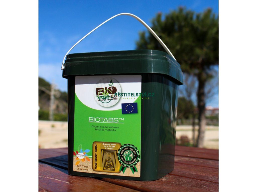 Tablety na hnojiva BioTabs jsou 100% organické. Obsahují kostní moučku, krevní moučku, moučku z peří, rybí moučku, přírodní humickou kyselinu, prospěšné půdní bakterie a vzorec pomalu působícího dusíku.