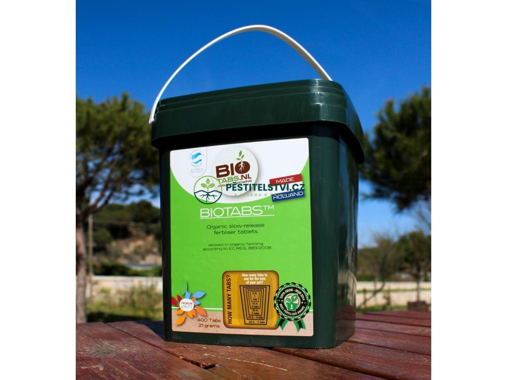Tablety na hnojiva BioTabs jsou 100% organické. Obsahuje kostní moučku, krevní moučku, moučku z peří, rybí moučku, přírodní humickou kyselinu, prospěšné půdní bakterie a vzorec pomalu působícího dusíku.