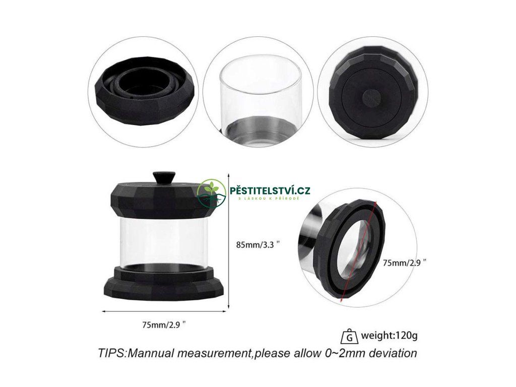 Bongthai Silicone Glass průhledná nádobka 100 ml s černým dnem a víkem.