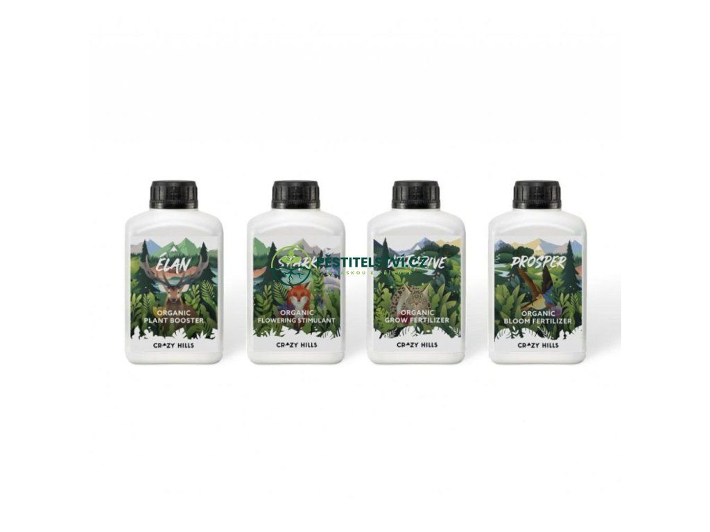 Balení obsahuje: - Crazy Hills ÉLAN 500ml - všestranný booster, směs huminových a fulvových kyselin, aminokyselin a za studena lisovaných arktických mořských řas - Crazy Hills SPARK 500ml - stimulant kvetení, který pochází z Ascophyllum nodosum, arktické mořské řasy v tekuté formě - Crazy Hills UPTHRIVE 500ml - růstové hnojivo, které maximalizuje vegetativní růst rostlin - Crazy Hills PROSPER 500ml - květové hnojivo, které poskytuje základní živiny ideální pro produkci pupenů, květů, plodů a semen. Crazy Hills KICKOFF 50 g je nabitý prospěšnými půdními organismy (kmeny Trichoderma a Bacillus), které kolonizují kořeny rostlin a šíří se do okolní půdy, aby výrazně zvýšily absorpční plochu kořenového systému, chránily kořeny před patogeny a rozkládaly složité organické sloučeniny pro snadnější absorpci.