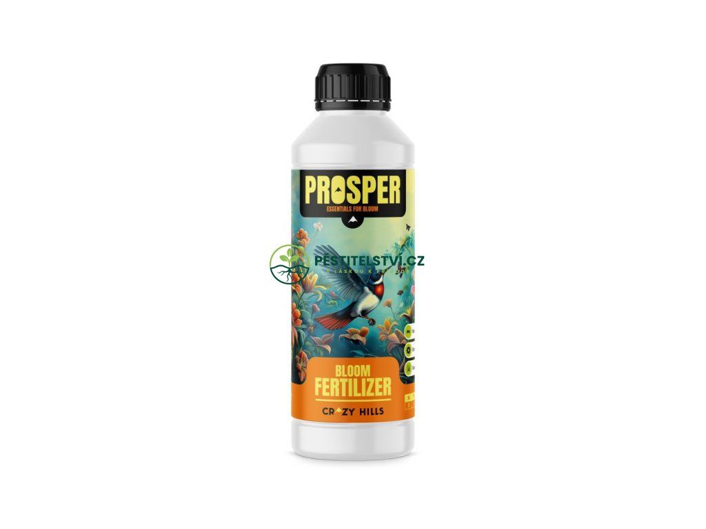 Crazy Hills PROSPER je květové hnojivo, které poskytuje základní živiny ideální pro produkci pupenů, květů, plodů a semen. Tato ideální směs nabízí nejlepší rovnováhu NPK potřebnou k zajištění přirozeného posílení esenciálních olejů, pryskyřic a terpenů pro pučení, kvetení a plodící plodiny. PROSPER má jedinečné složení, navržené tak, aby zvýšilo množství fosforu a draslíku dostupného pro rostlinu, podporuje růst silných a prosperujících pupenů, plodů a květů a přináší šíleně dobré vůně!Doplňkové parametry