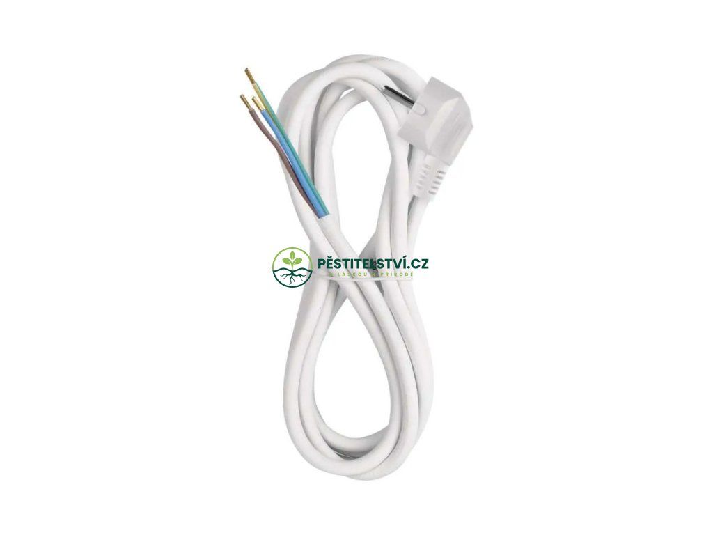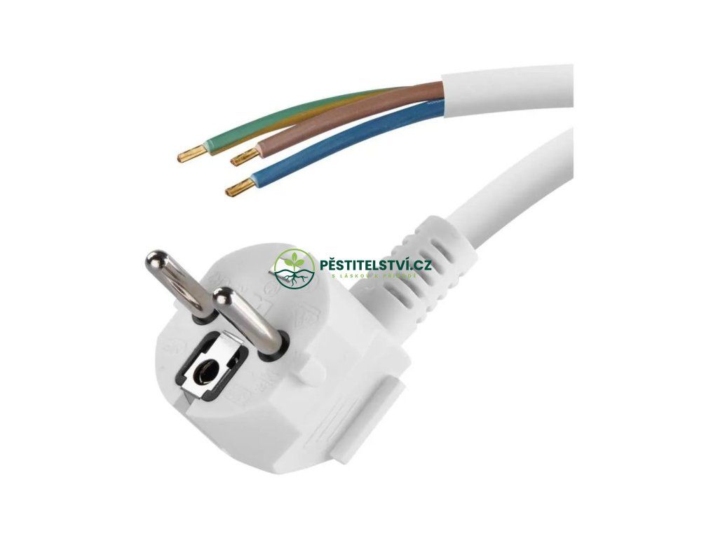 Trojžílový kabel s průřezem kabelu 1,5 mm². Na jednom konci EU zástrčka do zásuvky, na druhém volné zakončení.