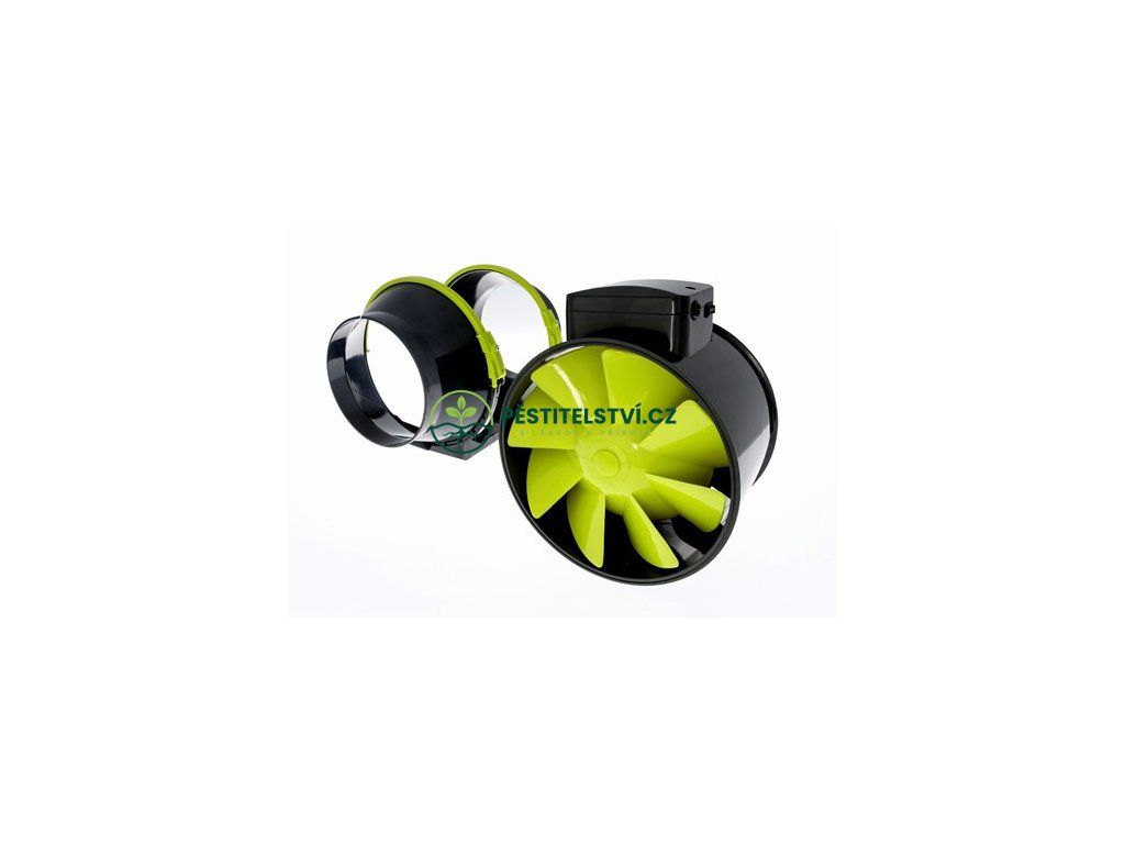 Ventilátor do potrubí HIGHPRO TT 100 o průměru 100 mm s kuličkovými ložisky, která prodlouží životnost ventilátoru. Ventilátor HIGHPRO TT 100 plnohodnotně splňuje nároky na vysoký tlak a přesto nízkou hlučnost. Ventilátor najde své uplatnění v prostorách s vysokou vlhkostí jako jsou WC, kuchyně, kanceláře, skleníky, pěstírny apod. Díky svým technickým parametrům je určen pro odsávání v potrubních rozvodech do 10 metrů. Ventilátor lze instalovat v jakémkoli místě potrubního systému,ať už vertikálně či horizontálně. Dále současně může být namontováno několik ventilátorů ke zvýšení tlaku nebo kapacity transportovaného vzduchu. Tělo ventilátoru je vybaveno montážní deskou pro upevnění na zeď.