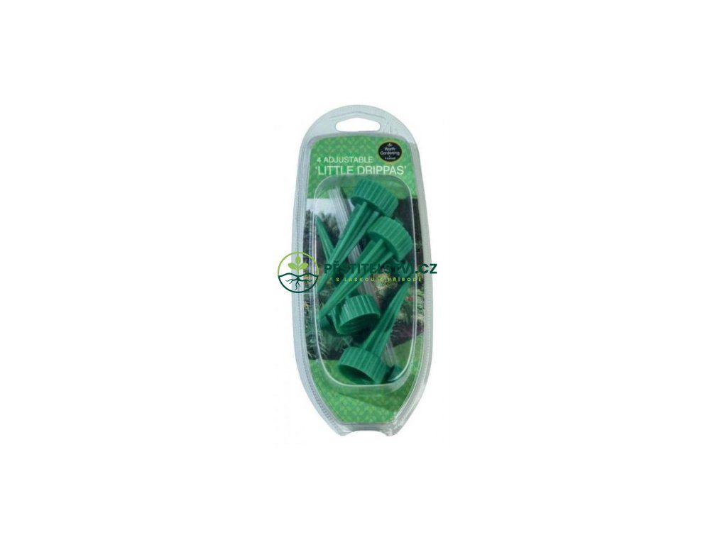Gravitační napájecí systém Garland. Samozavlažovací systém Little Drippa funguje na jednoduchém principu gravitace. Vhodný pro plastové láhve o objemu až 2 litry. Průtok lze snadno regulovat. V balení 4 kapkovače.