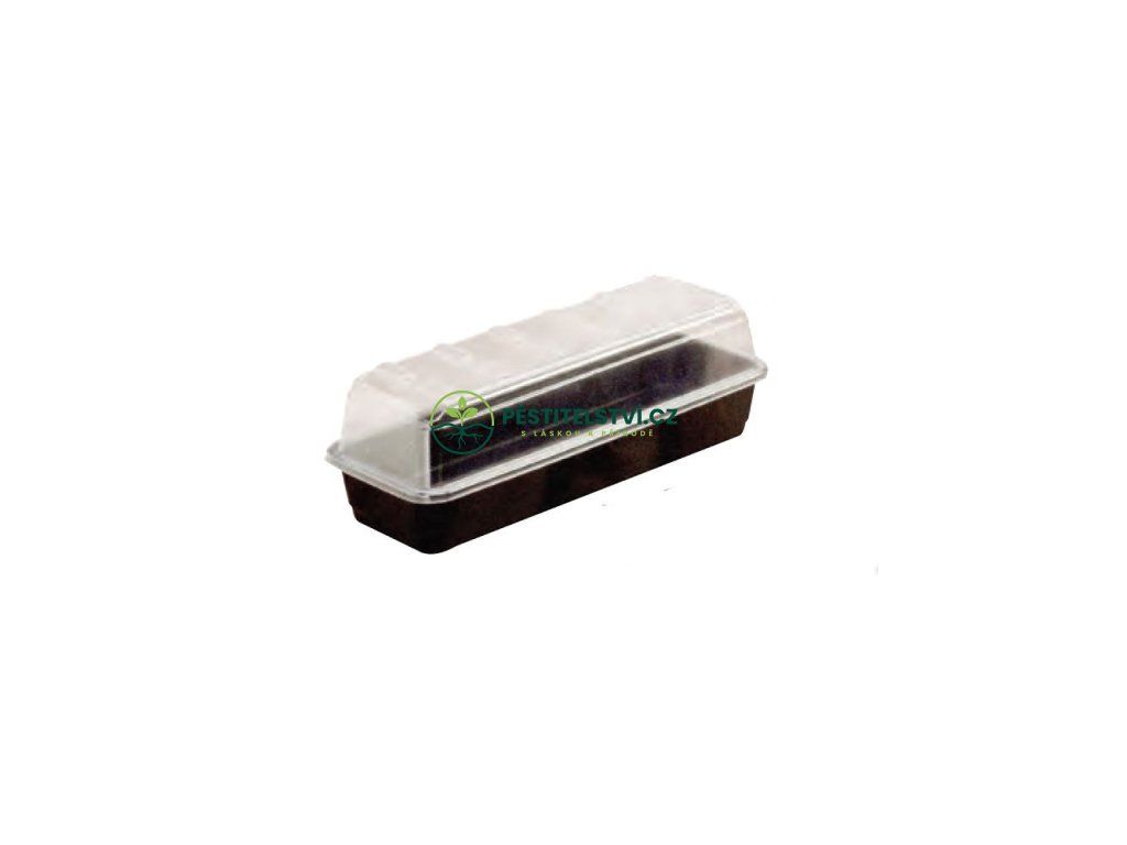 Garland pařník Narrow Green, tvrdý plast, nevyhřívaný, s průhledným víkem bez ventilačních klapek. Rozměry 37.5x13.5x12.5 cm. Foto je ilustrační. Barva podmisky je zelená.
