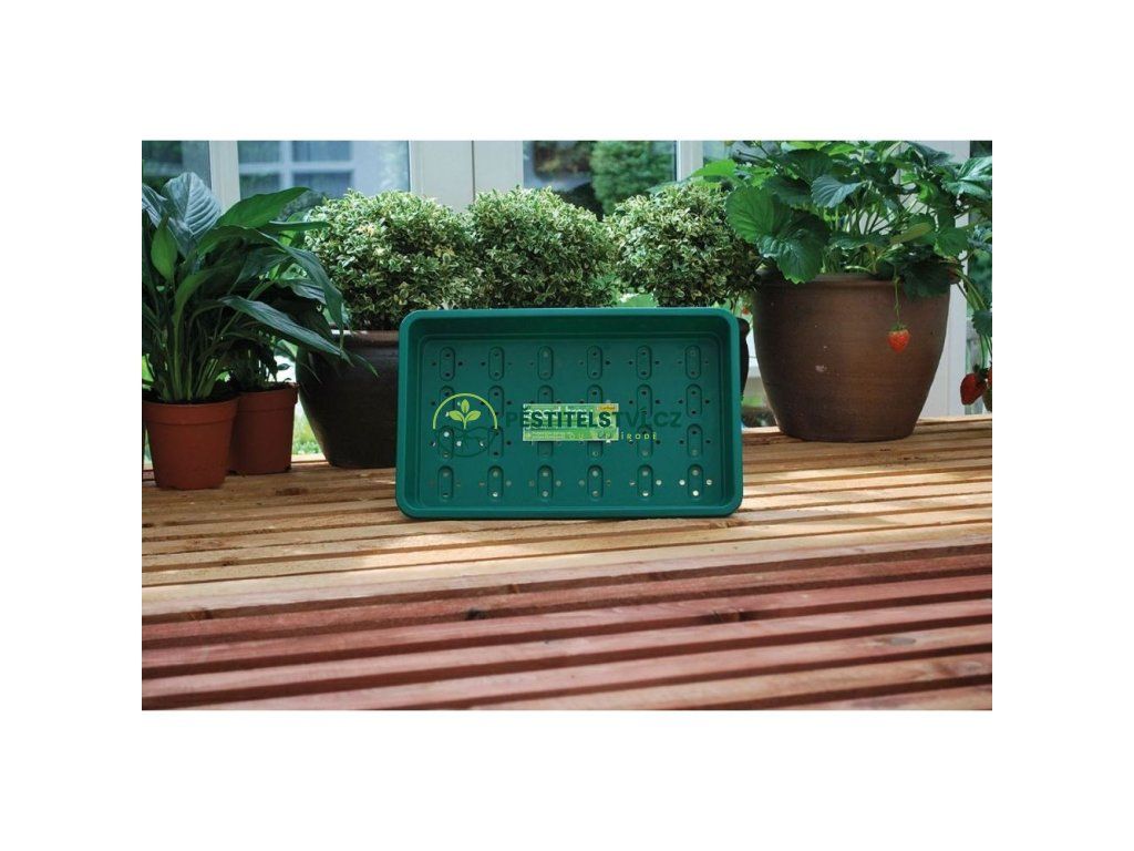 Garland podmiska plast Seed Tray Green s drenáží. Rozměry 37.5x23x6 cm. Podmisku lze využít samostatně nebo v kombinaci s průhlednýmí víkem jako skleník.