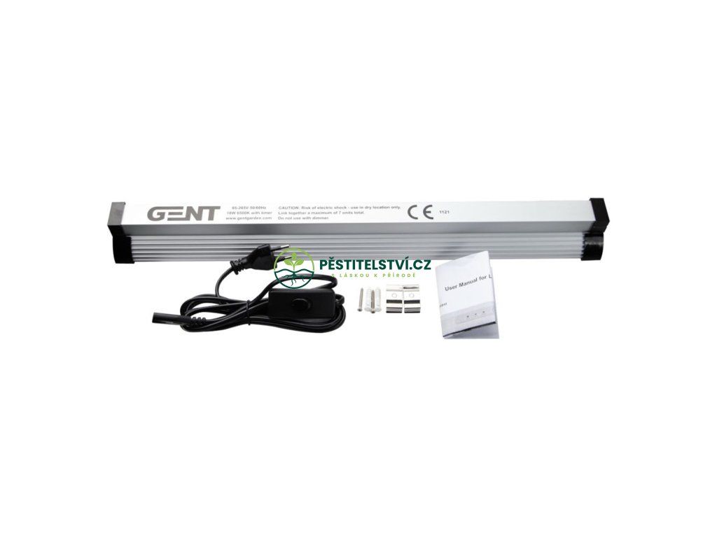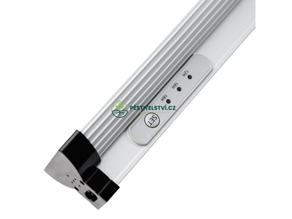18W LED segment, 6500K LED - růstové spektrum, s kabelem a vypínačem a časovačem zabudovaným přímo na svítidle. Rozměry 479x59x46mm. Montážní šroubky. Bez stojanu. Na růst a microgreens.