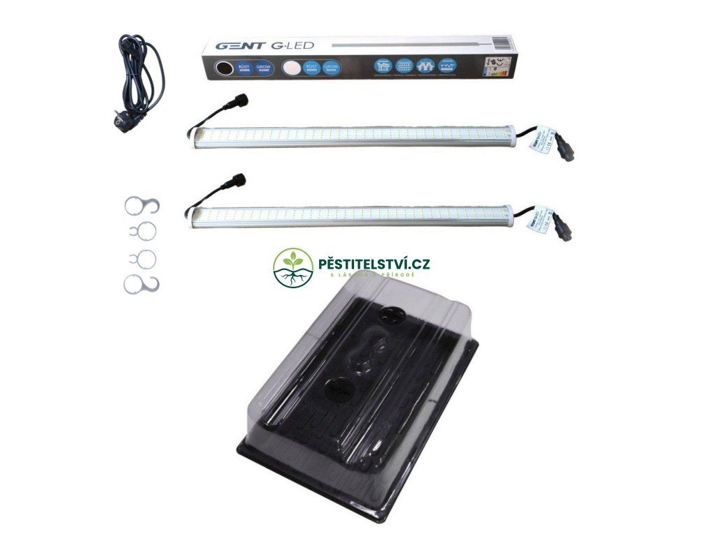 Set obsahuje dvoudílný nevyhřívaný skleník GENT, 2x LED svítidlo GENT G-LED 26W s jedním napájecím kabelem.Svítidla lze snadno napojit na sebe. Průhledné víko skleníku má ventilační klapky a prolisy na svítidla.