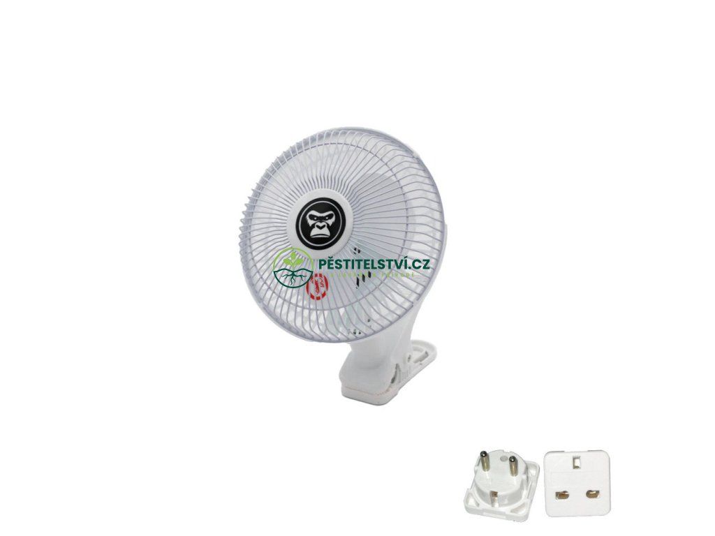Gorilla Clip Fan 15W, dvourychlostní klipsnový ventilátor 15 cm S ADAPTÉREM UK/EU