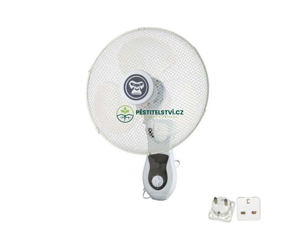 Gorilla Oscillating Wall Fan, třírychlostní nástěnný ventilátor 40 cm S ADAPTÉREM UK/EU