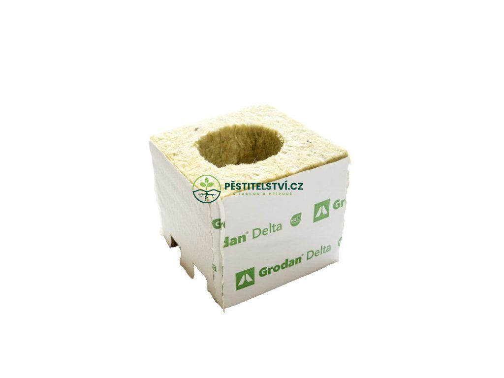 Grodan Delta NG2.0 75x75x65 mm, pěstební kostka s velkou dírou 42x40 mm, 1 ks. Rockwool Grodan je špičkové inertní médium poskytující podmínky k výnosnému pěstování rostlin a plodin. Pěstební rockwool je vyroben z čedičové vaty, má vynikající absorpční vlastnosti a zajistí vyvážený poměr vody a vzduchu. Podporuje rozvoj kořenového systému.Doplňkové parametry