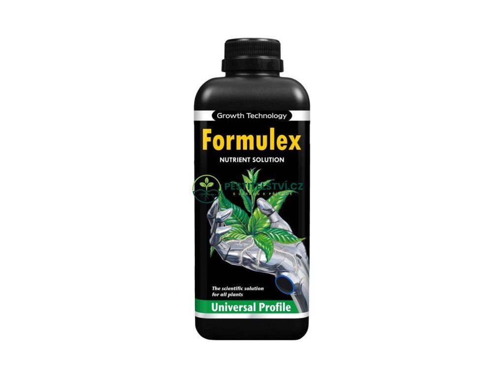 Formulex se stal průmyslovým standardem a je ceněn pro svou užitečnost a snadné použití. Jedná se o jediné řešení s úžasnou schopností zajistit stabilní pH díky průkopnické vestavěné pufrovací kapacitě. Formulex lze použít téměř pro všechny požadavky na hnojení a je to úžasně užitečná láhev, kterou je třeba mít po ruce. Mnoho lidí ji doporučuje pro sazenice a mladé rostliny obecně, ale lze ji použít ve všech fázích růstu a pro mnoho různých plodin.