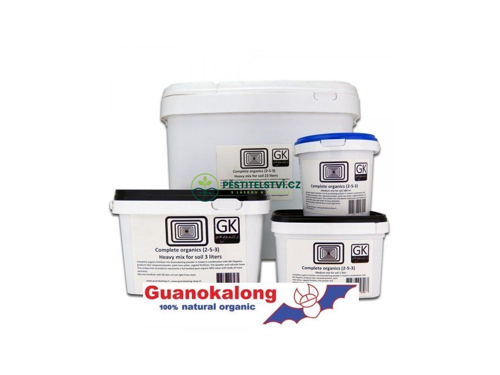 Guanokalong complete organics je komplexní 100% přírodní směs organického hnojiva pro indoor i outdoor pěstování. Tato směs je kombinací práškového Guanokalong, prášku z mořských řas, palmového popele, vegetativního prášku, rybí moučky a sopečné hlíny.
