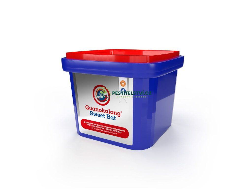 Guanokalong® Sweet Bat je směs Guanokalong High Phos a melasy z cukrové třtiny v granulované formě. Toto hnojivo obsahuje vysoké množství fosforu a draslíku. Aplikujte jako hnojivo pro kvetoucí rostliny, které smíchejte s půdou nebo substrátem na bázi půdy/kokosu.