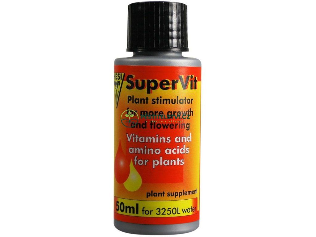 Rostlinný stimulátor pro růst a květ, Hesi Super Vit, obsahuje 25 vitalizačních v rostlině působících látek, které tvoří rostlinám zdroj síly a podporují tvorbu substrátní mikroflóry. Super Vit aktivuje a stimuluje produkci růstových a pro květ důležitých hormonů. Výsledkem jsou vitální a zdravé rostliny s bohatými a kompaktními květy. Dávkování 1 kapka/4,5L vody. Využitelné ve fázi růstu i květu. Do zálivky nebo do postřiku. Pro všechny druhy substrátů a kultivační metody.