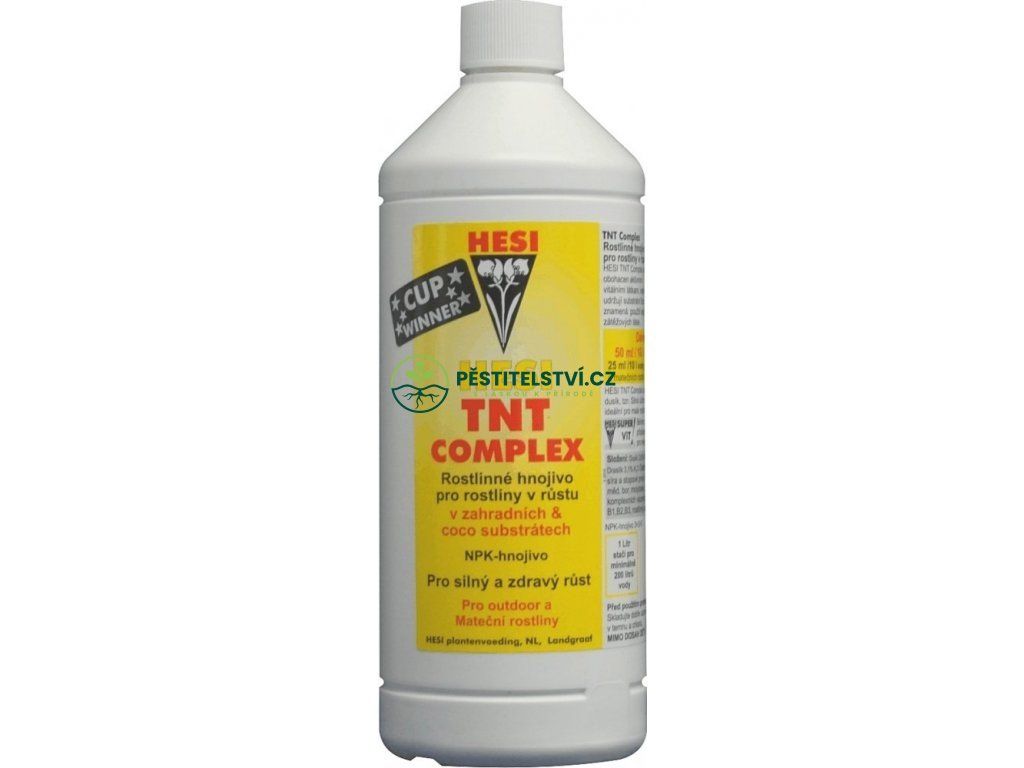 Kompletní růstové hnojivo Hesi TNT Complex, 1L obsahuje všechny důležité živiny a vitaminy, aminokyseliny a jiné látky. Vhodné pro pěstování v kokosu nebo hlíně.