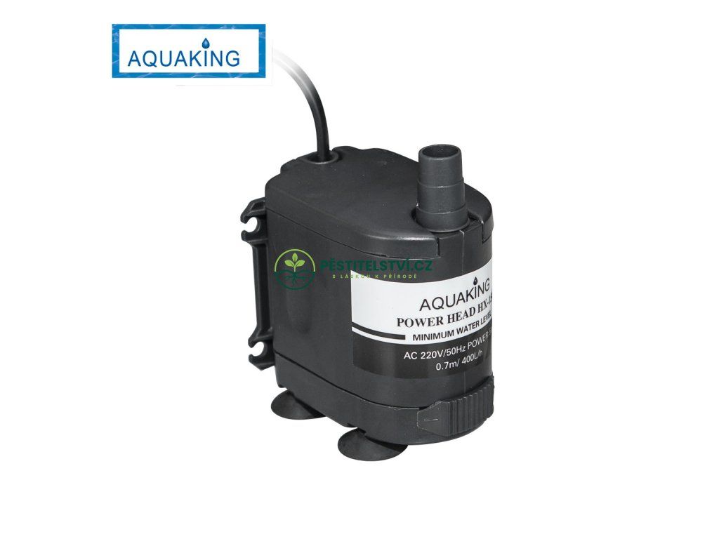 Ponorné cirkulační čerpadlo - výkon 400 l/h - výtlak 0,7 m - příkon 5W. Rozměry 63x83x73 mm. Konektor na hadičku 12 mm.
