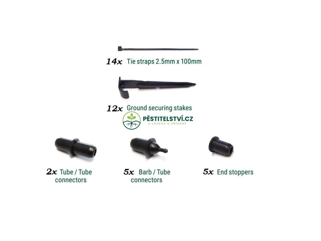 Poskytuje dostatek komponentů pro vytvoření 5 dalších rozboček v ploché zavlažovací hadici.