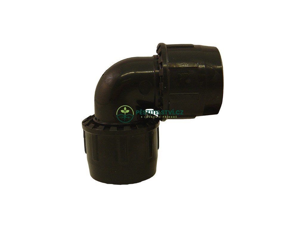 PE díl pro tlakovou závlahu, L spoj pro hadice o průměru 20 mm. Závlahová komponenta "Easy" se snadno instaluje a je chráněna proti vyškubnutí.