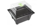 Malý nevyhřívaný plastový skleník s ventilační klapkou je doplněn o černý polystyrenový sadbovač a 24 sadbovacích bezrašelinových plugů z kokosového vlákna Root!t.