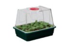 Obyčejný plastový skleník bez vyhřívání a termostatu. Průhlédné víko, dvě ventilační klapky, spodní část z černého plastu. Rozměry 54x28x25 cm.
