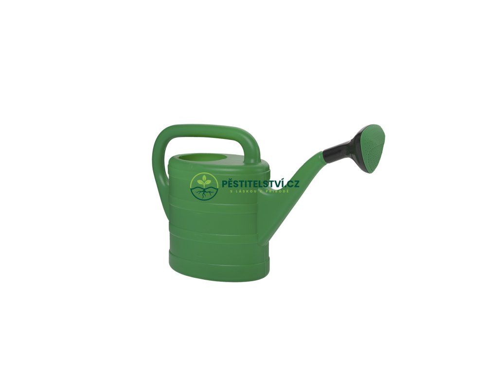 Zelená konev na zalévání rostlin a zahrady s objemem cca 2 litry.