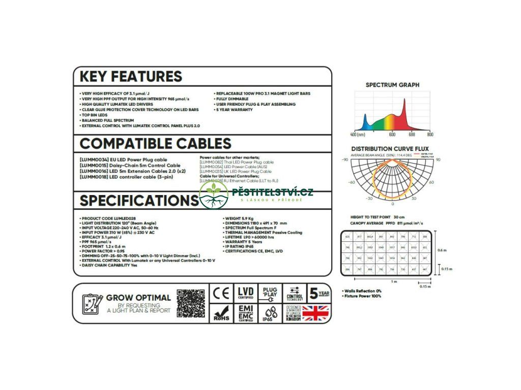 - Spektrum: plné spektrum na růst i květ