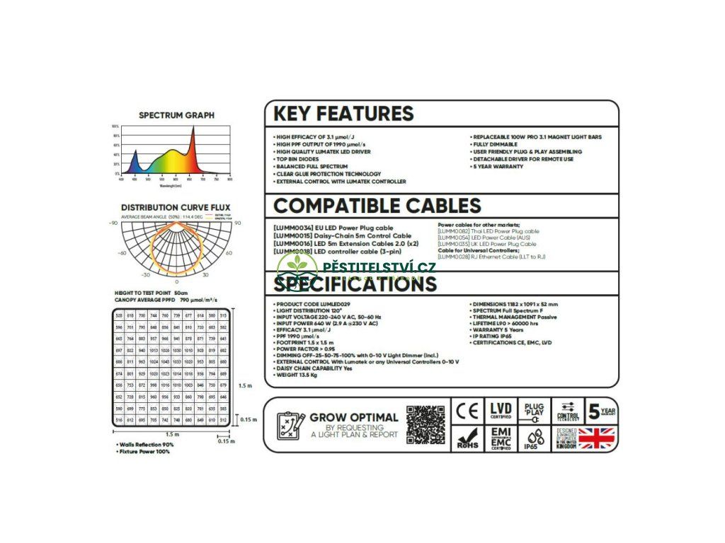 Vylepšené LED svítidlo Lumatek Zeus 600W PRO 3.1 μmol/J. Vyšší účinnost než u předchozího typu.