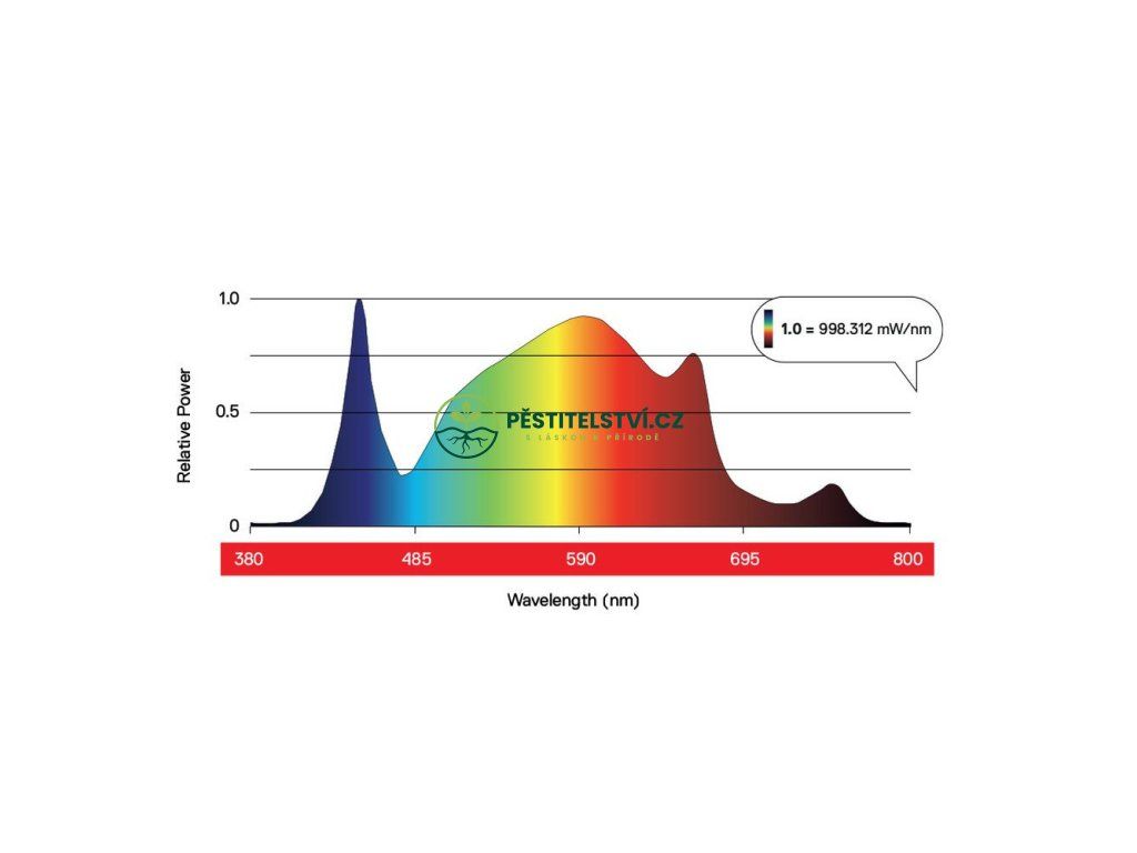 - Optimalizovaný spektrální výkon pro zajištění nejlepšího světla pro růst rostlin, včetně složek Far Red.