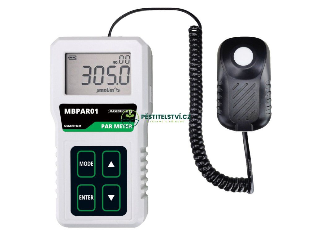 Měřič PAR Maxibright Quantum dává pěstitelům možnost měřit světelný výkon v reálném světě s přesností a jistotou. Tento přenosný přístroj, určený pro profesionální i amatérské použití, měří s mimořádnou přesností fotosynteticky aktivní záření (PAR) - světlo, které rostliny skutečně využívají k růstu. Ať už porovnáváte LED svítidla, ověřujete mapy PPFD nebo dolaďujete nastavení osvětlení, přístroj MBPAR01 poskytuje jasné a konzistentní údaje, které překonávají marketingová tvrzení.