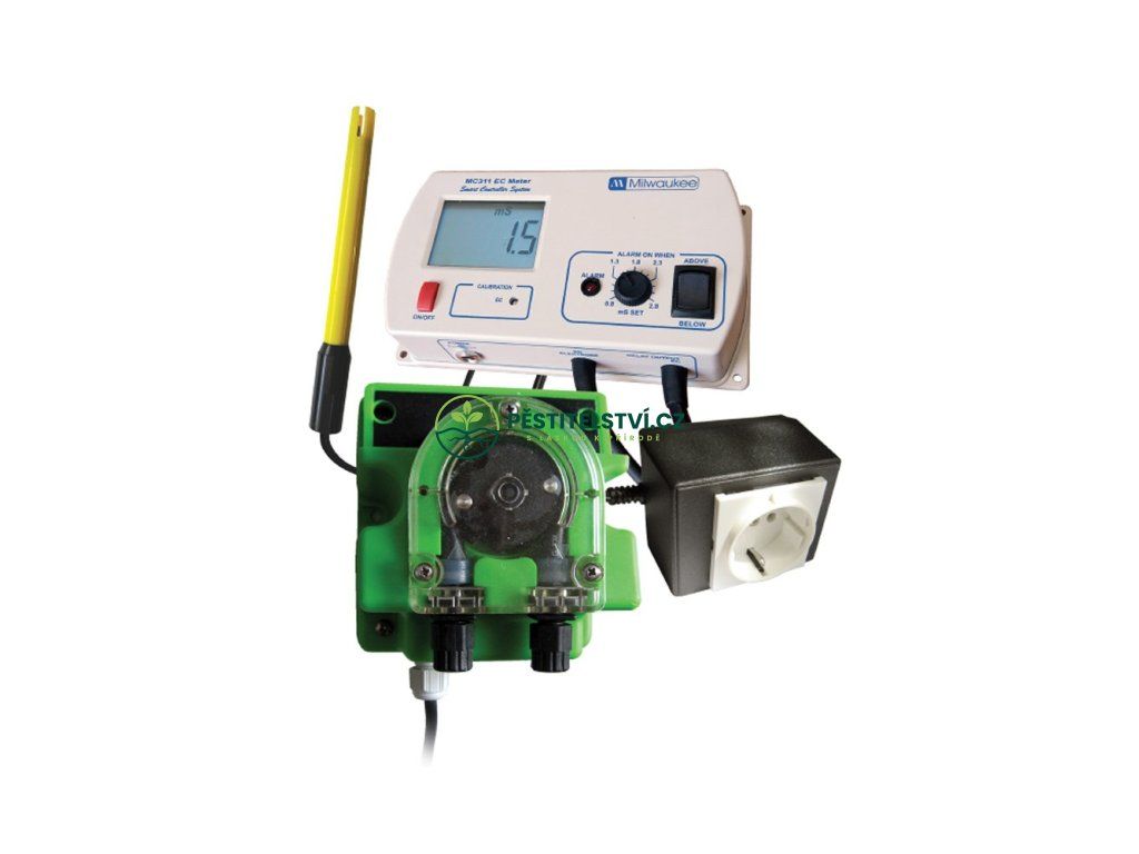 Řídicí jednotka MC311 EC s dávkovacím čerpadlem (MP810) poskytuje plně automatizované řízení EC živného roztoku v hydroponických a zavlažovacích systémech. Byl navržen speciálně pro řízení EC ve směšovacích nádržích pro hnojení. Malý a přesný průtok peristaltickým čerpadlem umožňuje udržovat v nádrži ideální hodnoty EC.