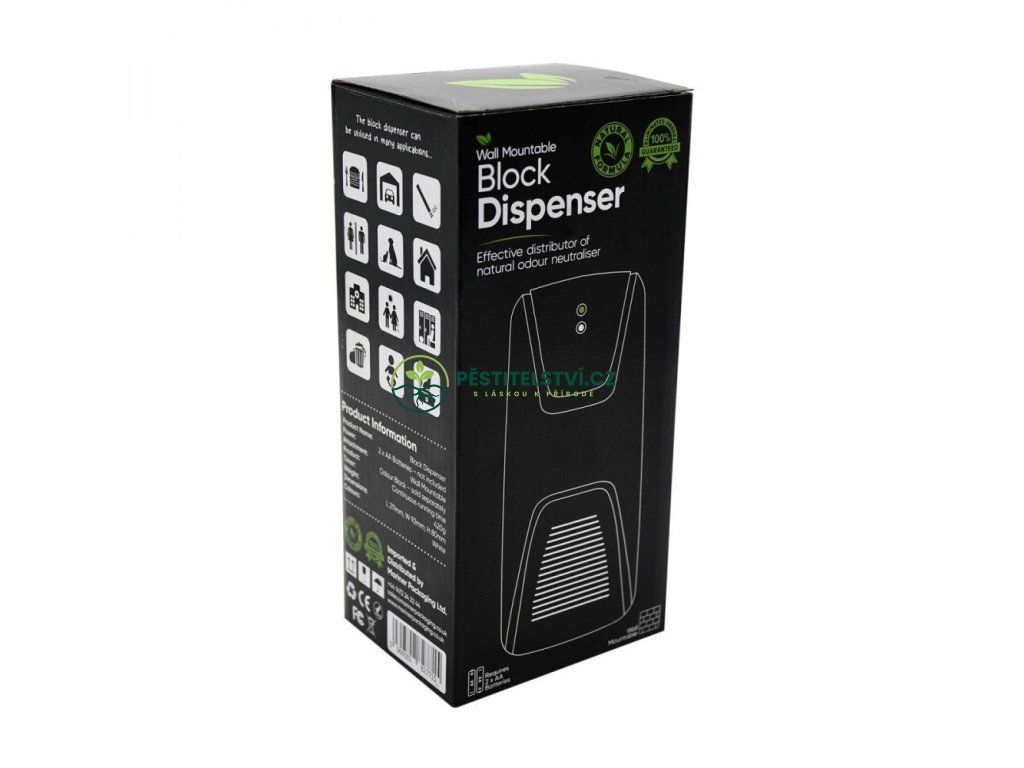 ONA Block Dispenser je vysoce účinný a cenově dostupný přírodní odstraňovač zápachu. Stačí vložit blok ONA pro neutralizaci zápachu do otvoru uvnitř dávkovače a zapnout ventilátor. Ten vyžene blok ONA z dávkovače do okolí a poskytne vám bezpečnou neutralizaci zápachu, která trvale odstraní pachy z domácnosti. Nastavení na 24hodinový, denní nebo noční provoz. Nepřetržitý provoz, 2/2 nebo 5/15 minut zapnutí a vypnutí.Doplňkové parametry