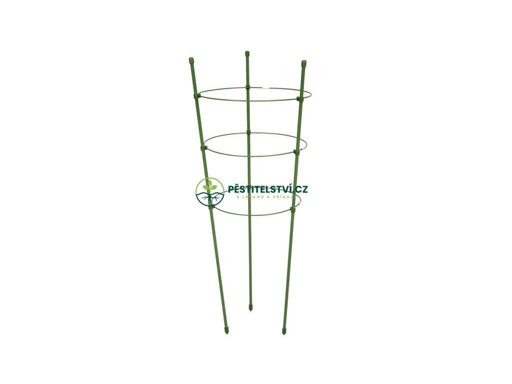 Tři tyčky a tři kulaté obruče pro rovný růst rostlin a zeleniny. Kovové tyčky jsou potažené PE.Doplňkové parametry
